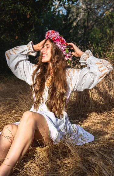 I’m Nataliia, originally from a small village in Western Ukraine, where I grew up surrounded by flowers, wheat fields, and open spaces. From a young age, I was making flower crowns for folk holidays, tending gardens, and helping my family care for crops and animals. Flowers have been a part of my life for as long as I can remember.